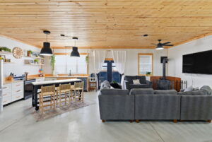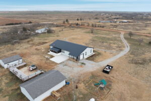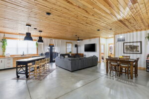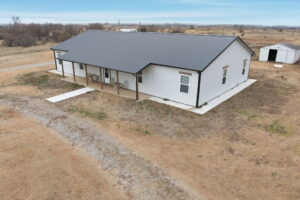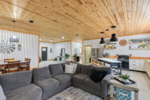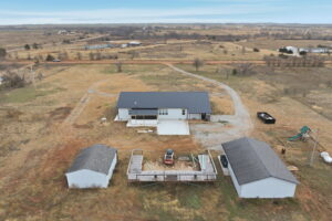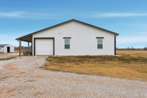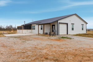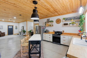Experience the perfect blend of country serenity and contemporary comfort with this stunning modern farmhouse barndominium set on 10± acres in the highly sought-after Renwick School District. Thoughtfully designed and beautifully finished, this one-of-a-kind property offers wide-open spaces, modern amenities, and with no restrictions there are endless opportunities for hobbies, livestock, recreation, or simply enjoying peaceful rural living. Inside, you’re welcomed by an expansive open-concept living area featuring beautiful wood ceilings, polished concrete floors, and abundant natural light. The spacious kitchen is both stylish and functional with modern lighting, open shelving, a spacious pantry, a large mobile island, and generous workspace—ideal for everyday living or hosting gatherings. The adjoining living and dining spaces flow effortlessly, creating a true great-room atmosphere anchored by a cozy wood-burning stove. The home is heated and cooled with a geothermal system, that also helps maintain the pond. The home’s exterior combines clean, modern farmhouse design with low-maintenance metal construction. A covered front porch and screened back porch, connected by concrete sidewalks, is perfect for sipping morning coffee, relaxing in the evenings, or enjoying the quiet countryside. The attached 1-car garage features a F5 storm shelter and is climate controlled, and both the detached 2-car garage and chicken coop/shed are heated. There is even a deck for an above ground pool if you wanted to add one to the property. The acreage offers room to roam with a mix of open land, a private pond, and ample space for animals, gardening, building a shop, or creating the rural homestead of your dreams. A schoolbus services this home to K-12 Andale schools, or you are also close to St. Joe Ost. And don’t forget about Cheney Lake, with Mr. D’s boat ramp being less than 2 miles away.