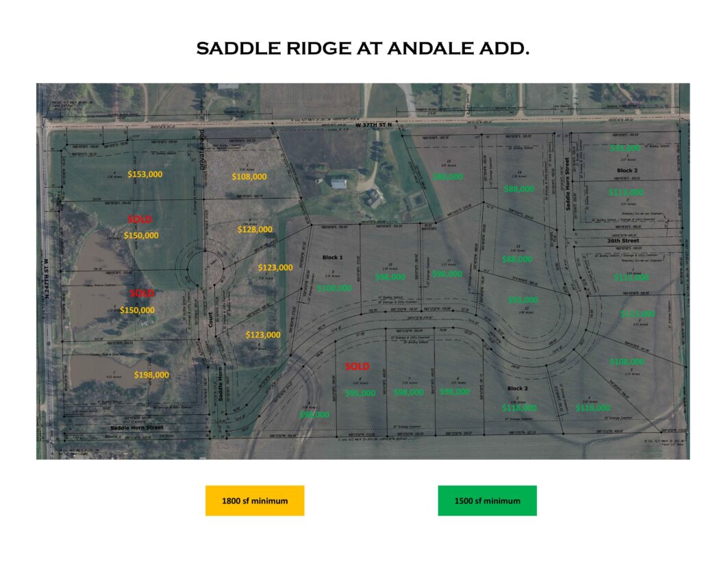 Beautiful lots (some wooded) in the Andale/Renwick School District! Saddle Ridge is a rural subdivision located on the southeast corner of 37th St. N. and 247th St. W. near Andale, just minutes from Wichita. These are 2-4 acre homesites that will be ready for your dream home soon! Preferred builder area, reasonable restrictive covenants apply. Underground electricity and high speed fiber internet will be available, buyers will be responsible for their own septic system, well, and propane if desired. Roads are currently under construction. Call for availability!